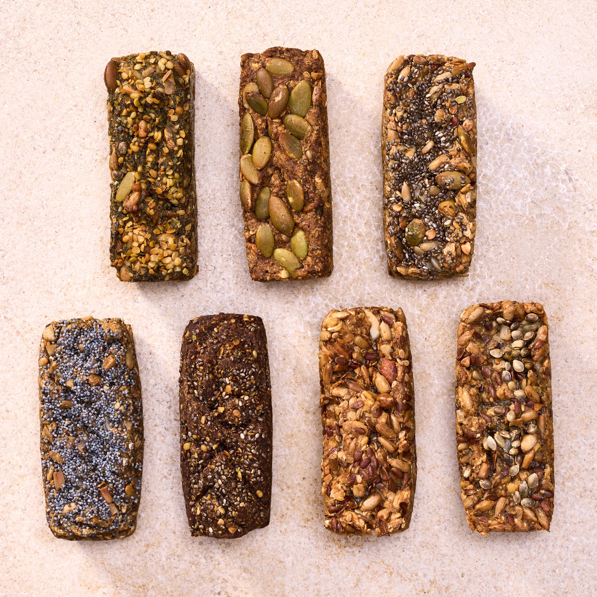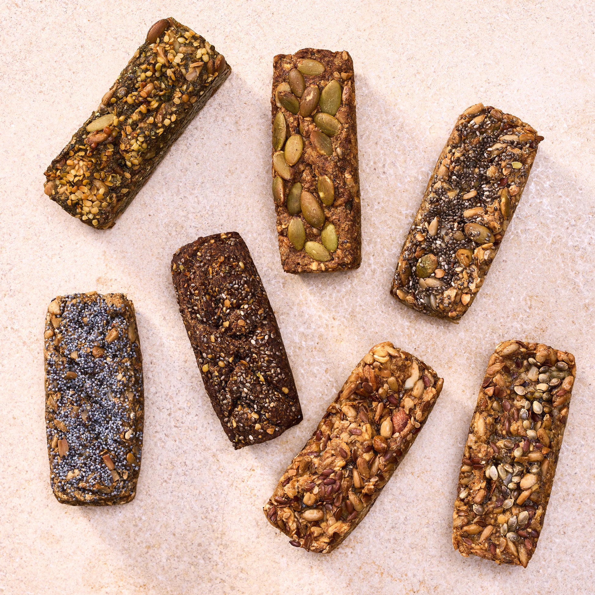 Abwechslungsreich, nährstoffreich und voller Geschmack: Unser Probierpaket mit 7 Brotriegeln vereint sieben verschiedene Sorten – Mohni Brennnessel, Spiru Lina, Manni Mandel, Hanfi Bogart, Chia Sam, Jamie Lee Kürbis und Claudia. Jede Sorte bringt ihren eigenen Charakter mit: von nussig über saftig bis frisch und kräftig – immer glutenfreiund voller natürlicher Energie. Die Mischung aus wertvollen Saaten, Kernen und Superfoods wie Spirulina, Moringa, Baobab oder Brennnesselsamen macht dieses Paket zu einer vielseitigen Entdeckungsreise für Körper und Geist.